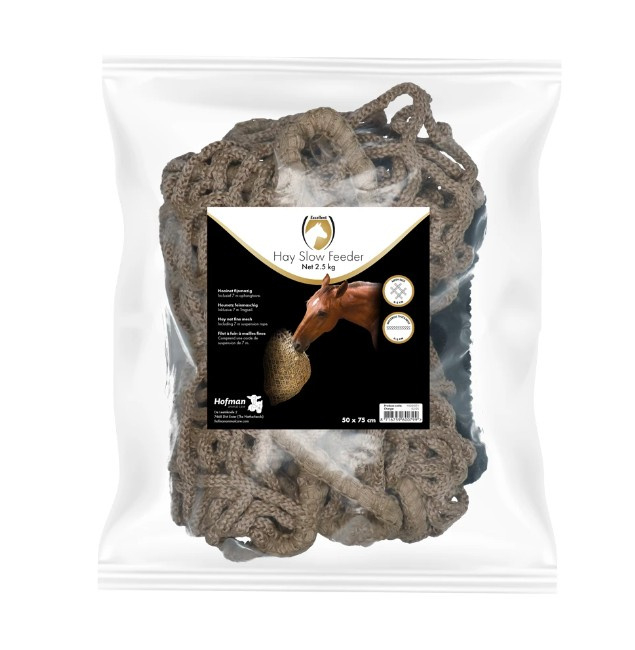 Filet à foin à mailles fines très solide qui assure une absorption lente du foin.
